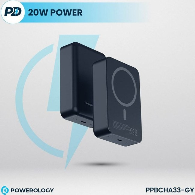 پاوربانک پاورولوجی مدل PPBCHA33 ظرفیت 20000 میلی آمپر ساعت ظرفیت پاوربانک 20 هزار توان خروجی 20 وات دارای شارژ وایرلس شارژر وایرلس 15 واتی دارای مگ سیف وزن : 349 گرم